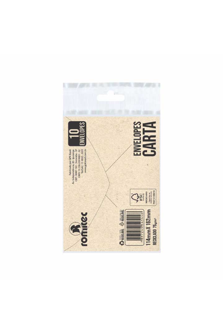 O envelope carta liso ROMITEC 100% reciclado, ideal para correspondências, envio de mensagems escrita e documentos. Embalagem 100% reciclável.